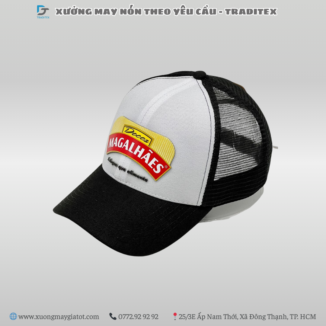 Tìm xưởng may nón uy tín tại TP.HCM? Traditex chuyên may nón kết phối lưới, thêu logo thương hiệu Xaba.vn sắc nét. Giá gốc tại xưởng, thiết kế miễn phí. Liên hệ ngay!