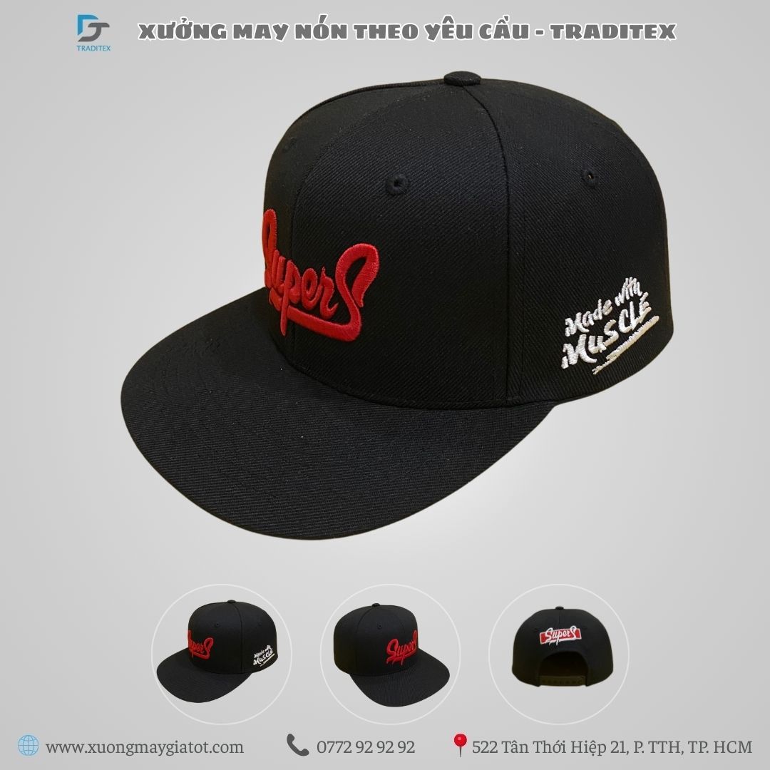 TRADITEX: Xưởng May Nón Snapback Đen Cá Tính – Thể Hiện Phong Cách FreeStyle Độc Đáo