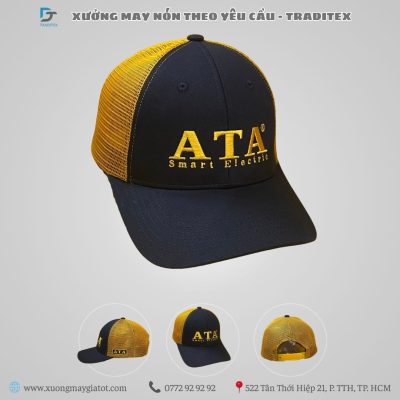 NÓN TRUCKER THÊU LOGO CÔNG TY ATA – MAY NÓN THEO YÊU CẦU TẠI TRADITEX